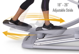 The Q47 adjustable stride length is from 18" - 26" so it comfortably fits every user in your home. The Q47 is truly the most comfortable elliptical machine that allows your body to move the way nature intended